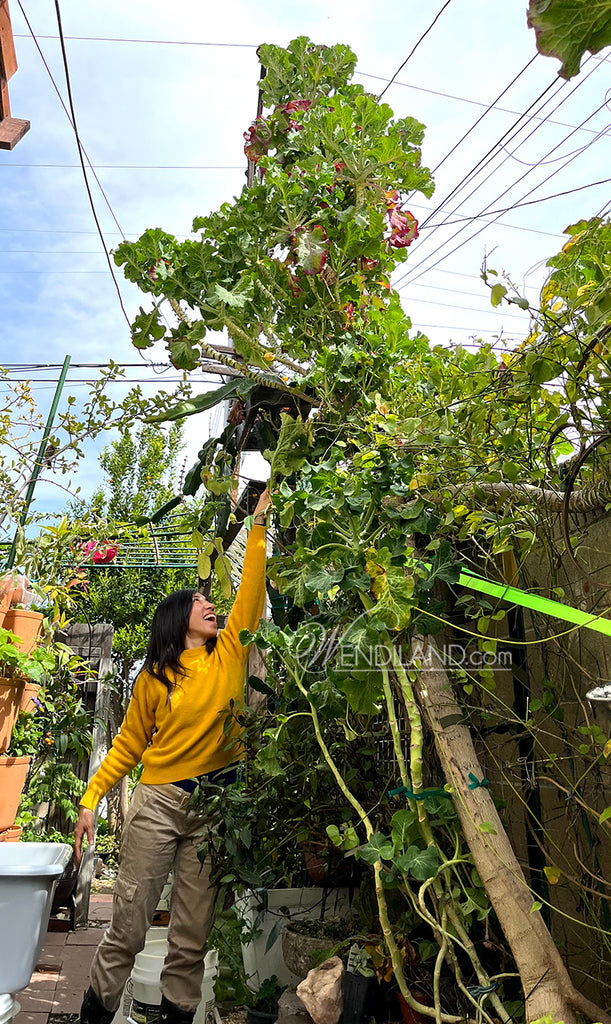 When growing a Green Tree Collard it would be hard to be out of nutrient dense food! This plant usually grows 5-8 feet tall. Mine has reached over 12 feet! It can be trimmed shorter for easier harvest of course. This is a perennial. This green variety tolerates heat better than the Purple Tree Collard. Both varieties grow well in zone 10 with mild winter. This green variety will perform better for places with high 90s to 100+F summers.