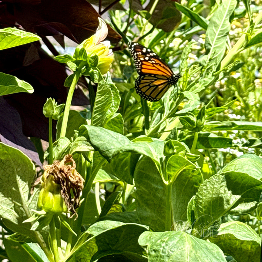 This Milkweed is a true show‑stopper — tall, graceful, and a beacon for pollinators. Monarch butterflies are especially drawn to it: they lay their eggs on the leaves, and Monarch caterpillars feed exclusively on this plant. As they munch, the caterpillars absorb the plant’s milky sap, which contains natural toxins that make them — and later, the butterflies — unappealing to predators.