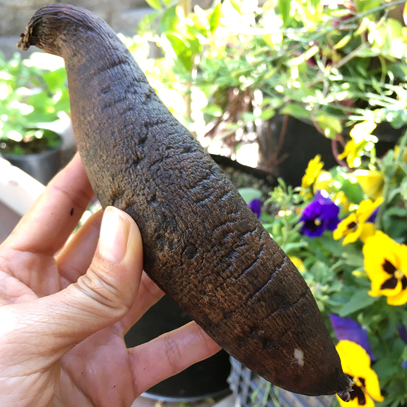 They are mainly grown for the juicy tubers, but leaves can be dried for tea. After harvesting and curing the tubers have a pleasantly sweet flavor, and a crunch of a jicama. (For more information on harvesting and curing, you can watch the video below this description.) Tubers can be eaten raw or cooked. It can also be made into syrup.